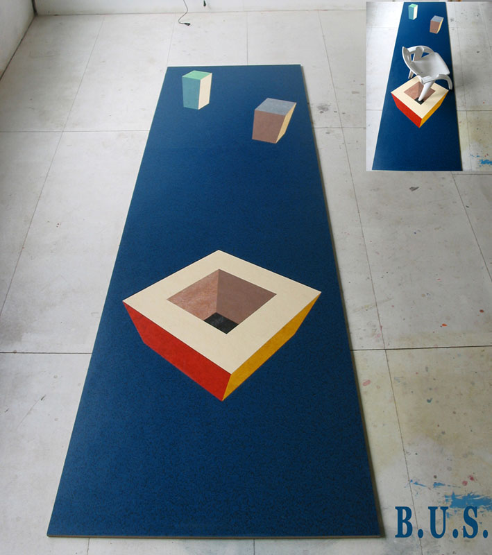 Linoléum marouflé sur contreplaqué. En deux morceaux. H 358 cm X L121 cm .