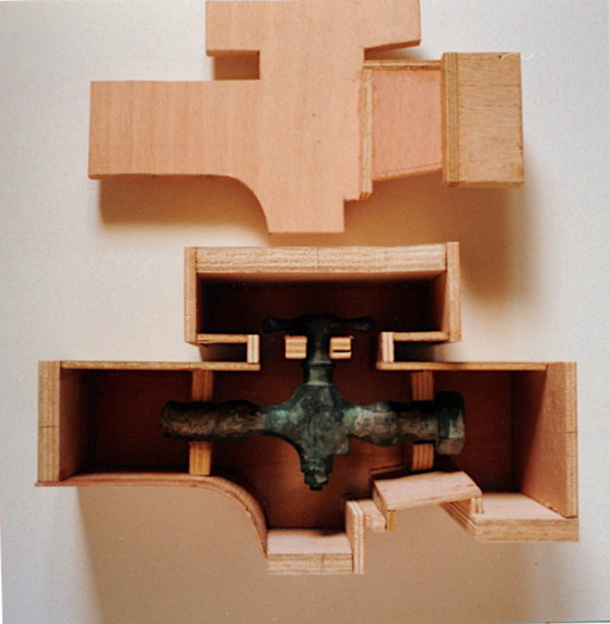 Contreplaqué, enduit, robinet, vernis. 35 x 22 x 16,5. Photographie couleur 50 x 75, radiographie 35,5 x 43.