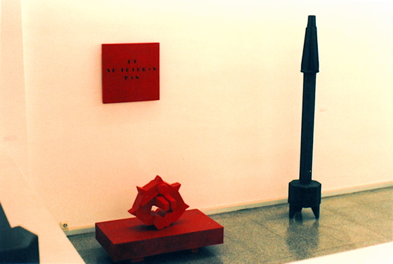 Les pièces seront numérotées et classées par ordre de réalisation. - une imitation pourrait être produite en taille de pierre, rigoureusement exacte. Parfois en fonte. Parfois surdimensionnée. -J'espère l'imprévu des formes réorganisées par la morphologie des choses utilisées. C'est à dessein que j'utiliserai des objets complexes ( avec ergots, reliefs imprévus, fil électrique, tuyau, ...) Ces objets appartiennent à mon histoire, il n'ont rien que l'ordinaire de ma vie, parfois très utilisés, courbés et fanés pas l'usage. Pièges à mémoire ces objets sont les restes d'une accoutumance au temps qui se perd. Leur devenir en "construction objective" demande parfois le détachement, la distance. Autre version du deuil. Alors l'art murerait une part d'histoire à la fois invisible et secrète mais bien là dans l'ombre des sculptures et qu'il faudrait savoir perdre ou savoir se détacher.