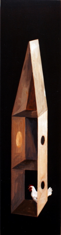 Tour à poules. Acrylique sur médium. H 42,5 x 11.