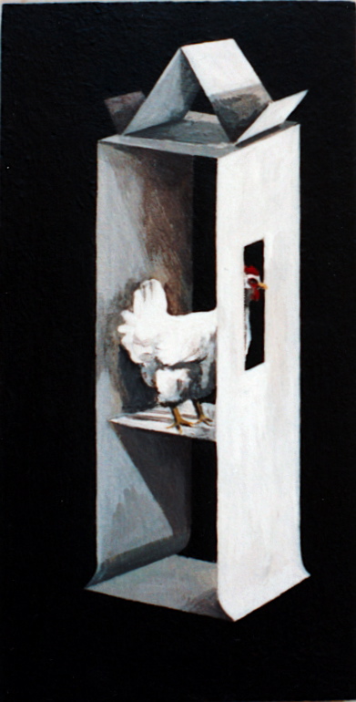 "Les modernes", "l'appincheuse". Acrylique sur médium. H 30 x L 12.