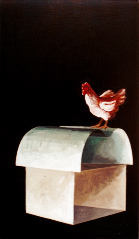 "Les modernes", la demandeuse. Acrylique sur médium. H 26 x L 15.