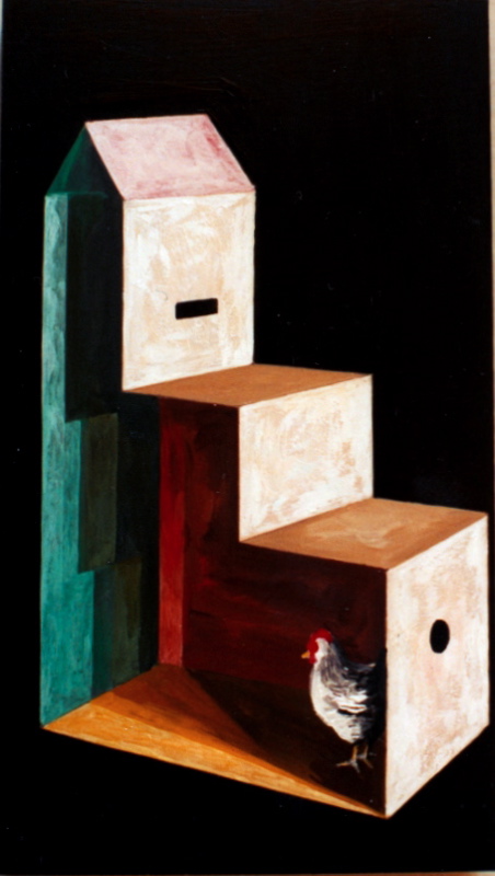 "Les modernes", Grand standing. Acrylique sur médium. H 25 x L 14.