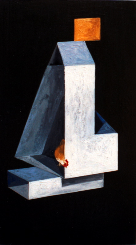 "les modernes ", La cureiuse. Acrylique sur médium. H 25 x L 14.
