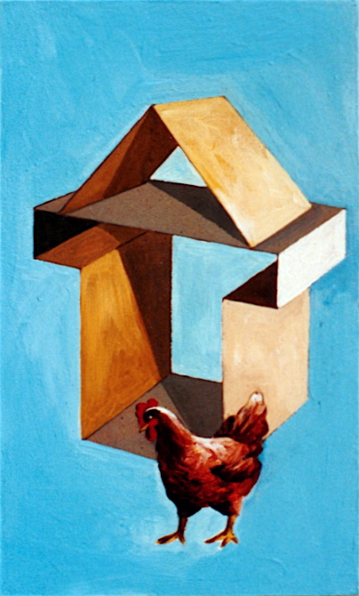 Poule traversière. Acrylique sur médium. H 20 x 12.