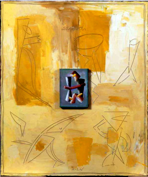 Transfiguration n° 62. "Samedi" 1991.Acrylique sur toile, composée de 2 châssis superposés, H 100 cm x H 84,4 cm.Collection Barbier, Villefranche-sur-Rhône.
