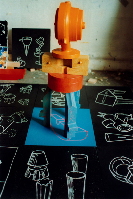 Bois, résine polyester, peinture glicéro. H 75 x 30 x 35.