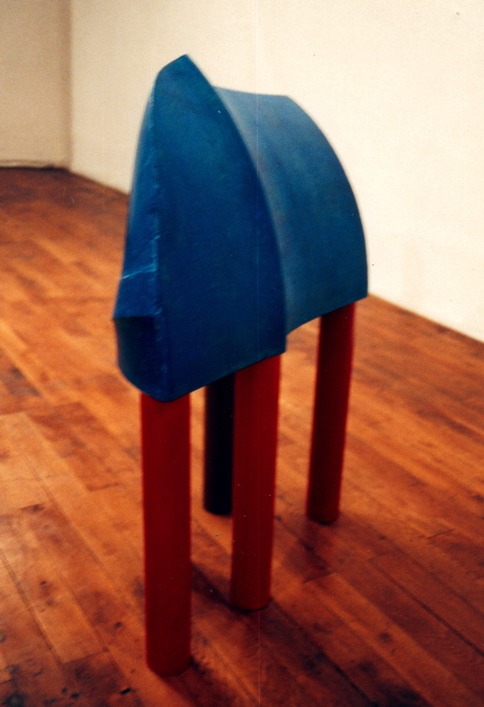 Sculpture: masse bleue sur cinq pieds cylindriques. 1992.
