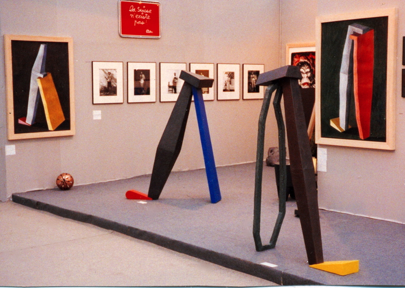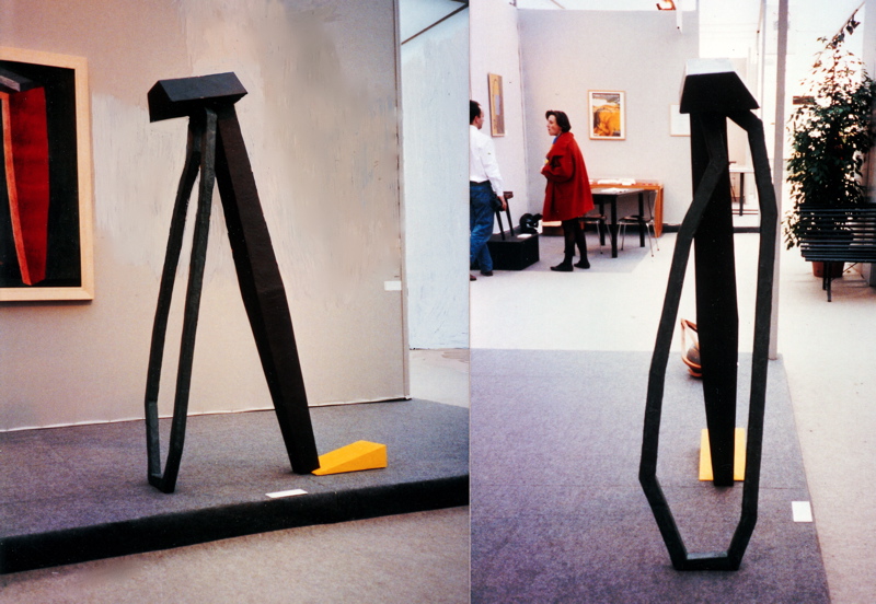 Sculpture n° 5. "Pièce debout, inclinée sur un anneau de bois" 1993.