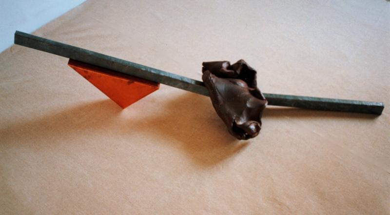 Sculpture, "pièce au sol rouille, basculée sur une cale disposée sur l'angle". 1993.