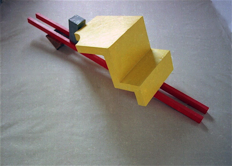 sculpture n° 12. "pièce au sol, inclinée sur trois basculeurs" 1993.