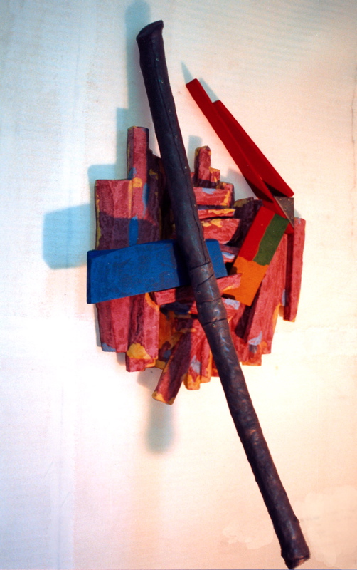 Mélange coloré et poudre de marbre sur bois, plomb sur "âme" de branche, zinc sur bois.