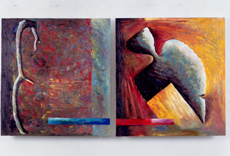 Couple. Huile sur enduit au sable sur carton marouflé sur bois aggloméré.