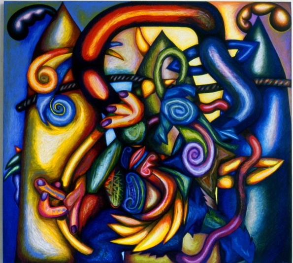Dessin: pastel à la cire sur papier marouflé sur contreplaqué.