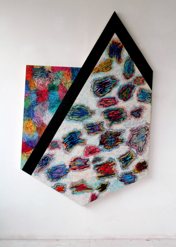 Pastel à l'huile et encre de chine sur papier marouflé.