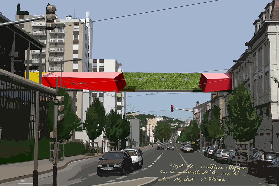 Projet de Sculpture Utopique en tôle émaillée, 2009, passerelle rue de la Montat à Saint-Etienne.