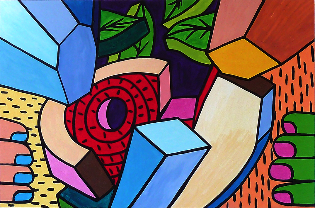 "Portrait contraste aux deux mains", 2011, acrylique sur carton, 120 x 80 cm.