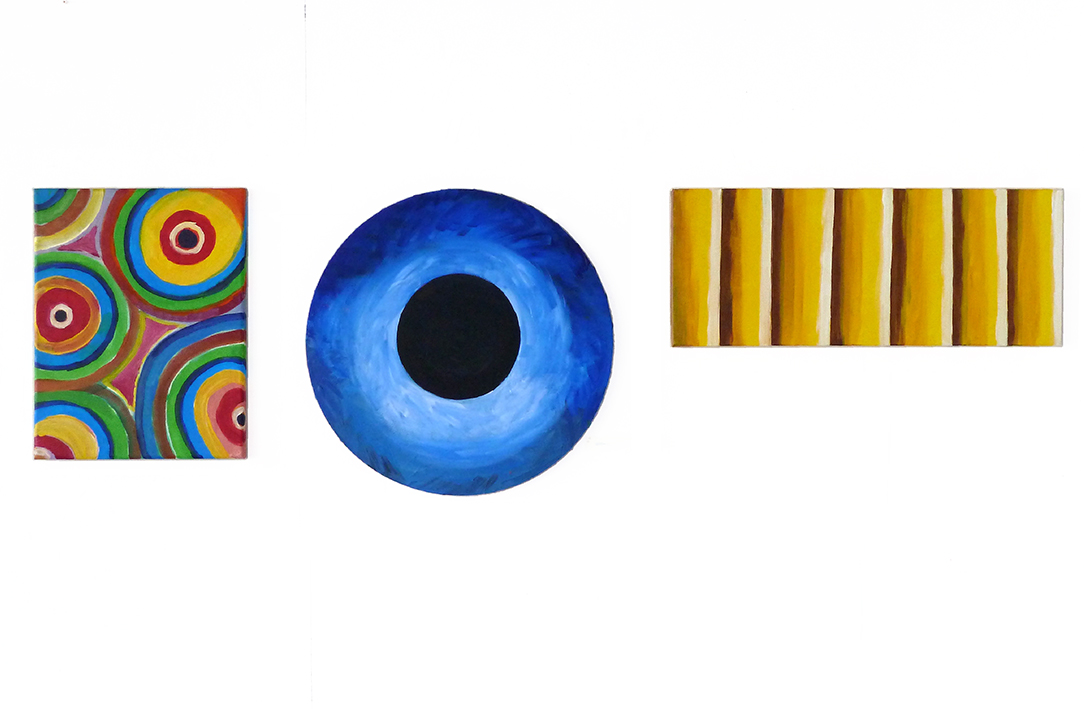 Assemblages, triptyque n° 11, 2009, acrylique sur toile ; 40 x 114 cm.